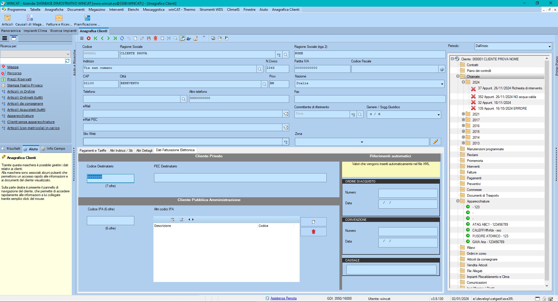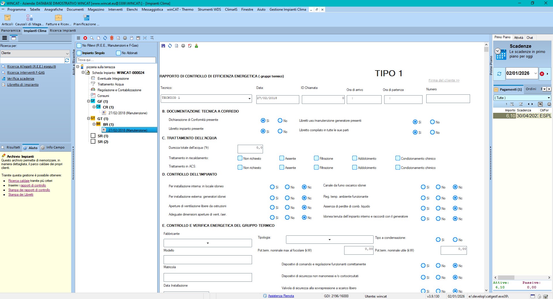 WINCAT è il software che gestisce tutti gli aspetti operativi tipici delle aziende di manutenzione e installazione impianti, assistenza tecnica, dal magazzino ai preventivi, ordini a fornitori, interventi tecnici e fatturazione.